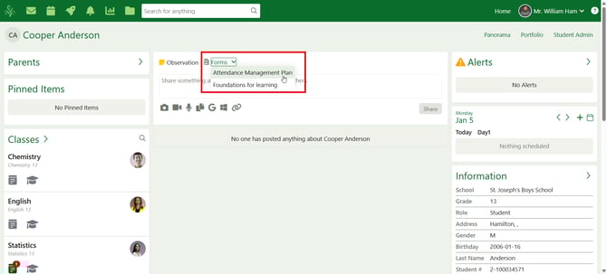 - Click on the student's name to navigate to their student panorama.