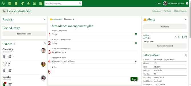 - Click 'Share' once you have filled in the form to share the form to the student's panorama.