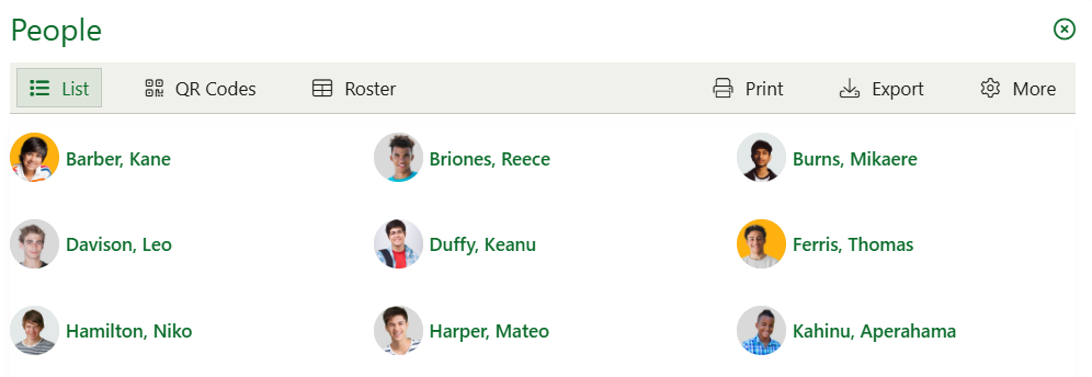 A list of students currently enrolled in the class, populated by the region’s systems. Teachers do not need to manually enter students into classes.