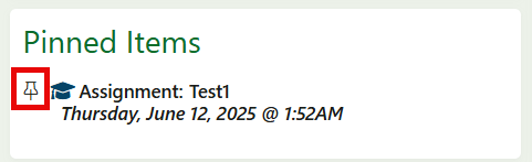 Pinned Items are items a teacher has chosen to be placed at the top of the class for better visibility.